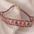 En perles grenat profond et pierres ovales dans des nuances de rouge, bordeaux et prune.