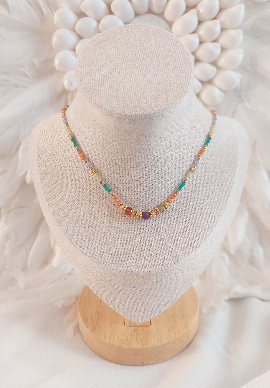 Joli collier en pierres et pendentif effigie poisson en acier inoxydable émaillé. Belles couleurs