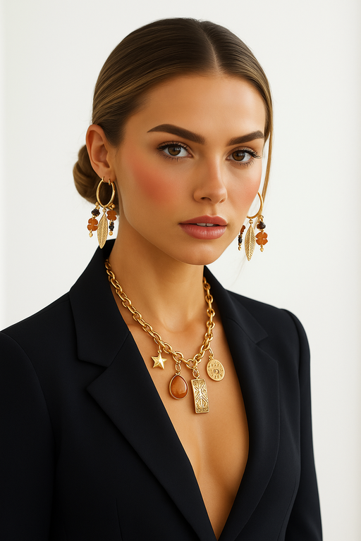 Le collier à breloques ou charm necklace est une pièce maîtresse qui attire le regard. Point focal, il est une épice visuelle qui donne de la saveur et du piquant à votre tenue vestimentaire